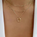 Esalta il tuo décolleté con Thora™, la collana in oro a strati che cattura l'attenzione con la sua eleganza moderna e la sua semplicità senza tempo. Composta da tre catene perfettamente bilanciate, ciascuna con uno stile di maglia unico e un pendente rotondo minimalista, Thora™ aggiunge un tocco di raffinatezza immediato a qualsiasi outfit. Che sia abbinata a una camicetta, un abito o una t-shirt basic, questa creazione si trasforma facilmente da casual a chic, offrendo versatilità e brillantezza per ogni occasione.